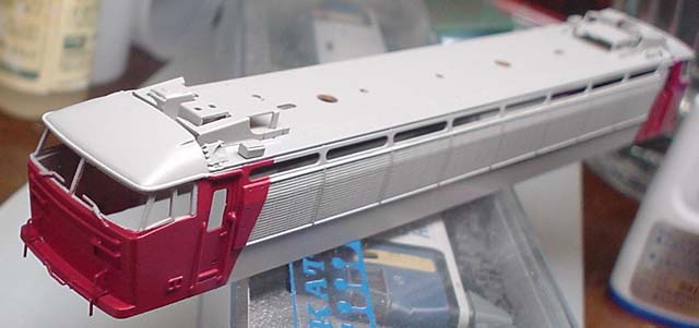 さて,ボディと足回りの合体です。今回は比較的組み立て精度も良かったせいか,合体作業に問題は出ませんでした。問題がなさそうなことを確認し,DCCデコーダの取り付け用のリード線を長めに出しておき,合体させます。