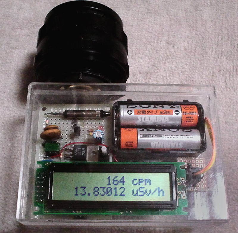 そもそもガイガーカウンターというのは,ガイガーミューラー管の機能がそのまま使われているもので,これがなくては話になりません。それゆえ,回路の工夫で性能を高めることも出来ませんし,代用品もありません。