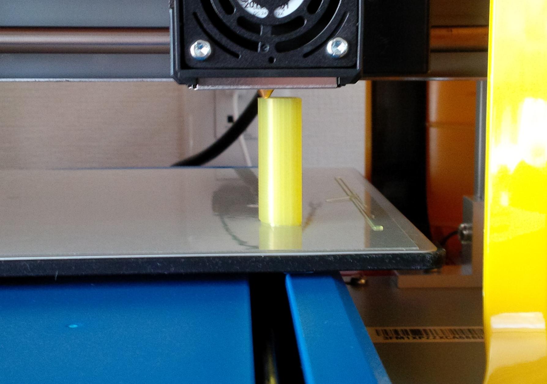 ささっと図面を描き,印刷をします。今回は高さもあるし,内部を充填したので時間がかかります。途中で倒れてしまい失敗した物が1本でましたが,後は無事出力が終わりました。